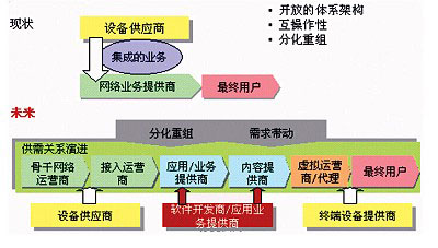 軟交換已經(jīng)從一種單純的技術(shù)發(fā)展成為網(wǎng)絡(luò)演進(jìn)中的一種理念,這種理念的一個(gè)核心就是更加開放。而傳統(tǒng)運(yùn)營(yíng)商由垂直化的網(wǎng)絡(luò)、業(yè)務(wù)一體化對(duì)用戶“絕對(duì)控制”狀態(tài)走向開放化、平臺(tái)化管理的多業(yè)務(wù)單元共同參與的價(jià)值鏈最終方向,的確需要長(zhǎng)期的過(guò)程。并且,這種發(fā)展過(guò)程的決定因素將不取決于技術(shù)發(fā)展的成熟與否,而是鏈條中各成員的生存狀態(tài)與利益分配。正如文中提到的,隨著網(wǎng)絡(luò)和應(yīng)用的不斷發(fā)展,業(yè)務(wù)與網(wǎng)絡(luò)的關(guān)系、運(yùn)營(yíng)商和業(yè)務(wù)經(jīng)營(yíng)者的角色都將發(fā)生改變。