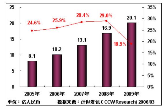 計世資訊(CCW Research)預計:2006年中國城市應急聯(lián)動系統(tǒng)IT投資將保持25.9%的增長率,投資規(guī)模將達到10.2億元;由于"十一五"規(guī)劃的實施,以及數(shù)字奧運進入關鍵建設階段,預計在2007年,中國城市應急聯(lián)動系統(tǒng)增長率達到28.4%,2008年增長率達到29.0%;到2009年中國城市應急聯(lián)動系統(tǒng)將進入穩(wěn)定增長階段,IT投入將達到20.1億元。