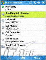 (2)Microsoft Office Communicator Mobile移動(dòng)通信客戶(hù)端:是設(shè)計(jì)來(lái)擴(kuò)展到達(dá)Microsoft Office Communications Server 2007服務(wù)通信服務(wù)器的使用Windows Mobile操作系統(tǒng)驅(qū)動(dòng)的設(shè)備。它與桌面版的Microsoft Office Communicator 2007通信客戶(hù)端相似的外觀,以確保當(dāng)用戶(hù)遠(yuǎn)離他的桌面系統(tǒng)時(shí)仍能與Microsoft Office Communications Server 2007通信服務(wù)器進(jìn)行實(shí)時(shí)通信。(圖5)