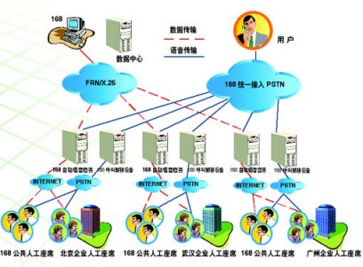 2、分布式接入服務(wù)功能:"企業(yè)客戶服務(wù)系統(tǒng)"為企業(yè)分布式的人工座席提供接入服務(wù)。當(dāng)某個城市的消費者在使用168電話中自動語音應(yīng)答功能時,只要按"0"號鍵,電話就會被轉(zhuǎn)到企業(yè)在的當(dāng)?shù)胤⻊?wù)人員座席上,由專業(yè)人員來提供服務(wù)支持。此種功能適合于在多個城市設(shè)立人工座席的企業(yè)用戶。