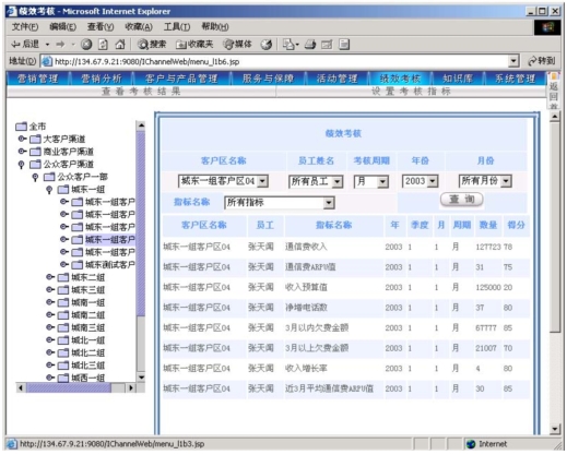 作為電信營銷服務(wù)支撐系統(tǒng),其主要功能是支撐營銷人員開展?fàn)I銷活動,并通過功能完善的考核系統(tǒng)幫助各級人員進行工作管理。本系統(tǒng)可以對KPI指標(biāo)進行靈活的設(shè)定,可以靈活定義多種參與考核的數(shù)據(jù)來源,使得各級主管能夠?qū)蛻艚M、社區(qū)(商業(yè)客戶區(qū)、農(nóng)村統(tǒng)包區(qū))的營銷服務(wù)工作進行考核評分。考核周期可以通過參數(shù)進行設(shè)定(一般以月為單位)。
