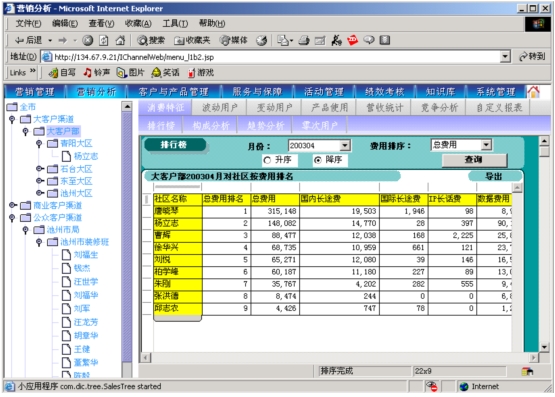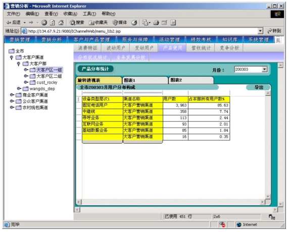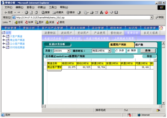 本系統(tǒng)是以市場為導(dǎo)向、客戶為中心、效益為目標(biāo)的電信營銷和服務(wù)的支撐系統(tǒng),為企業(yè)經(jīng)營服務(wù)和營銷戰(zhàn)略提供有力的支撐,通過對業(yè)務(wù)收入、業(yè)務(wù)發(fā)展以及市場競爭的深入分析,從而達到留住老客戶、發(fā)現(xiàn)新客戶,了解競爭對手動態(tài),及時掌握市場變化趨勢的目的。