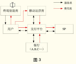 該模式中,第三方支付服務(wù)提供商是獨立于銀行和移動運營商之外的經(jīng)濟(jì)實體,其自己拓展用戶,與銀行及移動運營商協(xié)商合作,提供手機(jī)支付業(yè)務(wù),見圖3。
