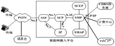 Management Point)的接入管理。SCP通過七號(hào)信令網(wǎng)與SSP和IP相連,通過數(shù)據(jù)鏈路(X.25)與SMP相連。SCP與SSP和IP之間的通信規(guī)程采用智能網(wǎng)應(yīng)用規(guī)程(INAP).IP(Intelligent