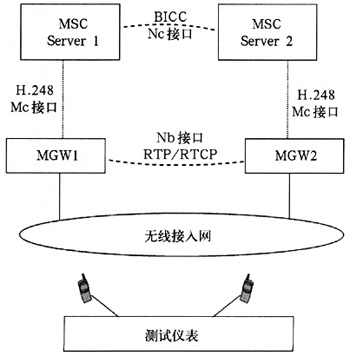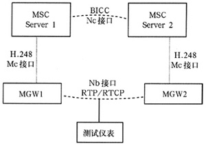 主要是通過測試儀表模擬兩個NGN網(wǎng)絡的終端用戶,首先通過同NGN網(wǎng)絡的信令交互建立起這兩個用戶之間的呼叫連接,然后在該連接上模擬發(fā)送和接收測試語音流,通過對收發(fā)語音信號的比較,來測試出端到端的語音質(zhì)量,并且能提供PESQ值和時延值,圖3為主動式語音質(zhì)量測試的結構圖。