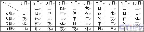 圖2 24小時(shí)四班三運(yùn)轉(zhuǎn)排班表1