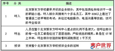 北京新東方學(xué)校呼叫中心在1999年還只是3部咨詢電話,不到10名工作人員。到今年,已經(jīng)擁有36個(gè)座席以及72名經(jīng)過(guò)專(zhuān)業(yè)培訓(xùn)的座席代表,平均每日接聽(tīng)3500通電話。
