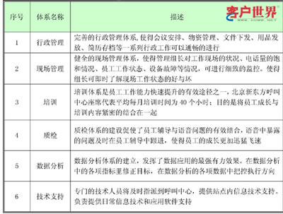 北京新東方呼叫中心的運(yùn)營(yíng)體制主要分為三個(gè)部分和六大體系。
