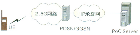 PS方案指直接在GPRS或CDMA 1X核心網(wǎng)絡(luò)上增加PoC服務(wù)器來實(shí)現(xiàn)PoC業(yè)務(wù);這種方案是國際標(biāo)準(zhǔn)發(fā)布之前的普遍方案。該方案結(jié)構(gòu)簡單,成本低,PoC服務(wù)器直接與GGSN/PDSN相連,負(fù)責(zé)PoC業(yè)務(wù)的提供,其網(wǎng)絡(luò)結(jié)構(gòu)如圖3所示: