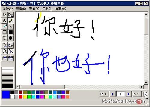 只要單擊“白板”,Netmeeting會啟動一個所有與會者共享的白板程序,與會人員可以在上面通過圖表信息、使用草圖或展示圖形來解釋概念。還可以復制桌面或窗口區(qū)域,將其粘貼到白板上,如圖13。