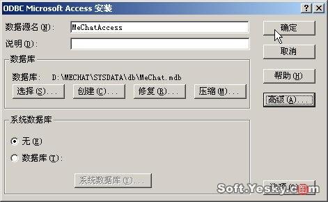 為使Mechat系統(tǒng)具有較高的運行效率,我們將其添加數(shù)據(jù)庫支持,單擊“開始”/“設置”/“控制面板”,選擇“治理工具”/“數(shù)據(jù)源(ODBC)”,切換至“系統(tǒng)DSN”,單擊“添加”按鈕啟動ODBC數(shù)據(jù)源添加向?qū)Вx擇“MicrosoftAccessDriver(*、mdb)”,然后在DSN屬性設置窗口設置數(shù)據(jù)源名稱為“MeChatAccess”,選擇數(shù)據(jù)庫文件為D:\MeChat\SysData\db目錄下的MeChat、mdb(如圖23)。設置完畢,單擊“確定”退出。