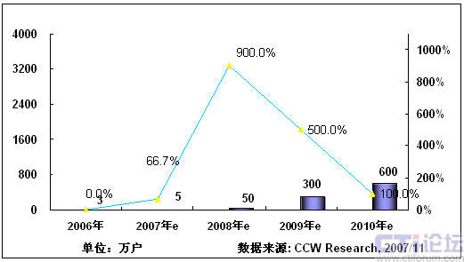 2008年,隨著3G在中國商用,以及奧運帶來豐富視頻內(nèi)容,將推動手機電視作為一項重要的移動增值業(yè)務(wù)將進入市場發(fā)展期;同時隨著網(wǎng)絡(luò)、終端、內(nèi)容、商業(yè)模式等因素的發(fā)展,產(chǎn)業(yè)鏈初步完善,看好手機電視業(yè)務(wù)的產(chǎn)業(yè)鏈各環(huán)節(jié)大力介入,北京奧運會將大大激發(fā)用戶使用手機電視業(yè)務(wù)的熱情,從而推動手機電視進入快速發(fā)展階段。根據(jù)計世資訊預(yù)計,2008年中國手機電視用戶將達到400萬。