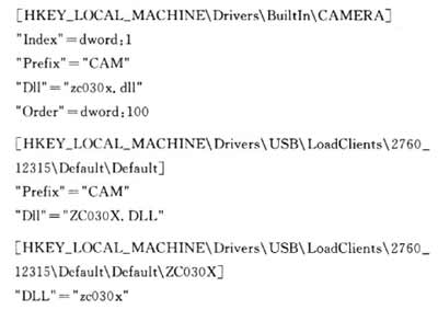 系統(tǒng)自動(dòng)加載驅(qū)動(dòng)程序時(shí),首先要將驅(qū)動(dòng)程序復(fù)制到\WINDOWS文件夾下,然后向注冊表中寫入攝像頭的驅(qū)動(dòng)信息: