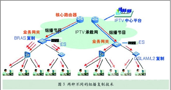 BRAS和DSLM都可以很好地解決組播問題。但由于BRAS在DSLAM的上層,因此如果采用BRAS組播方式,其特點是投資相對較少、控制較為方便,但是下層從BRAS到DSLM,用戶終端的帶寬占用較大。如果采用DSLAM組播方式,其特點是投資相對較多,控制較復雜,但是下層從BRAS到DSLM,用戶終端的帶寬占用較小。因此要根據(jù)各地具體情況來決定采用在何處進行組播復制。但無論如何,組播復制要確保不能影響用戶的收看質(zhì)量。