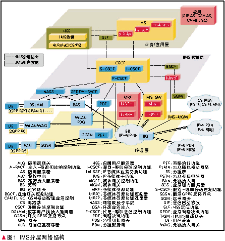 首先,IMS鑒于VoIP的成功應(yīng)用,在承載層摒棄了長期以來在傳統(tǒng)電信網(wǎng)中占主導(dǎo)地位的電路交換(CS)域,采用基于IP技術(shù)的單一的PS域傳輸各種媒體和信令數(shù)據(jù)流,即首次提出在通信網(wǎng)中采用全IP承載網(wǎng)絡(luò),使之成為通信網(wǎng)融合的底層基礎(chǔ)。