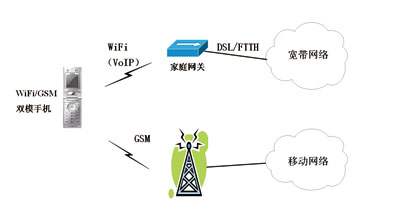 WiFi/GSM雙模手機(jī)既可以接入無線局域網(wǎng)WLAN,實(shí)現(xiàn)VoIP(VoiceoverIP)功能,又可以接入蜂窩網(wǎng),實(shí)現(xiàn)移動(dòng)通信功能。但傳統(tǒng)的WiFi/GSM雙模手機(jī)在進(jìn)行WiFi網(wǎng)絡(luò)和GSM網(wǎng)絡(luò)之間的切換時(shí),無法實(shí)現(xiàn)無縫切換,用戶體驗(yàn)比較差,因此前幾年這種雙模終端發(fā)展得并不理想。