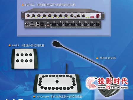 “手拖手”型和“自動(dòng)混音型”會(huì)議系統(tǒng)是會(huì)議系統(tǒng)發(fā)展過程中出現(xiàn)的兩種模式,手拖手型會(huì)議系統(tǒng)較適合于經(jīng)常裝拆移動(dòng)且傳聲器數(shù)量較多的“討論會(huì)”場合。而在配置有專業(yè)音響設(shè)備且具備一定建聲條件的廳堂,講臺(tái)上布置多只傳聲器以備多人發(fā)言,或參與討論人數(shù)并非特別多的場所,采用自動(dòng)混音型會(huì)議系統(tǒng)則能獲得較佳的音質(zhì)效果。