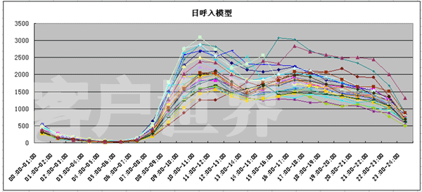 根據(jù)每時段呼入的真實號碼數(shù)情況,可得出日呼入話務的基礎(chǔ)模型,如下圖: