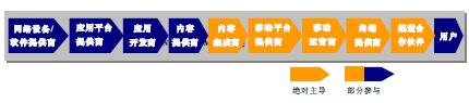 3G時代的移動通信產(chǎn)業(yè)鏈由技術(shù)平臺提供商、設備提供商、應用平臺提供商、應用開發(fā)商、內(nèi)容提供商、內(nèi)容集成商、移動平臺提供商、移動運營商、終端提供商、渠道合作伙伴等市場主體構(gòu)成。移動通信產(chǎn)業(yè)鏈是一個整體功能鏈狀網(wǎng)絡,構(gòu)成產(chǎn)業(yè)鏈的市場主體隨著移動通信技術(shù)、市場競爭情況以及用戶需求的變化而變化。移動運營商在產(chǎn)業(yè)鏈上發(fā)揮的作用也是不同的,每當產(chǎn)業(yè)鏈發(fā)生變化時,移動運營商就需要重新進行角色定位。