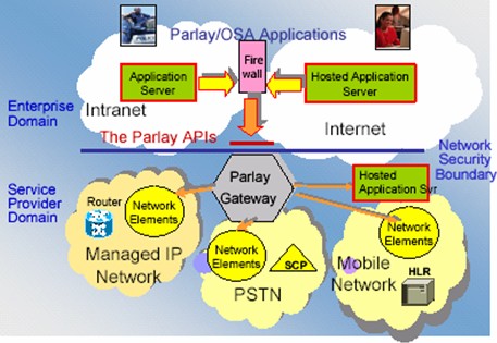 從圖中可以看到,OSA的基本思路是,把電信網(wǎng)絡(luò)的服務(wù)抽象成為一個(gè)特定的接口。這個(gè)接口的名稱(chēng)現(xiàn)在被我們稱(chēng)為Parlay。建立在OSA基礎(chǔ)之上的服務(wù)可以利用Parlay這個(gè)接口很容易的使用電信網(wǎng)絡(luò)中的服務(wù)而不用去關(guān)心這些接口是如何實(shí)現(xiàn)的。例如我們的一個(gè)多媒體服務(wù)希望給一個(gè)用戶(hù)發(fā)送一條短信以通知他某個(gè)事件的發(fā)生,那么這個(gè)服務(wù)需要做的是告訴Parlay這個(gè)接口需要給哪個(gè)用戶(hù)發(fā)送什么樣的內(nèi)容的信息,而不需要了解在移動(dòng)網(wǎng)絡(luò)中原來(lái)是使用SMPP這樣的協(xié)議來(lái)實(shí)現(xiàn)短信的傳送的,又或者也不用去考慮在一個(gè)IP網(wǎng)絡(luò)中我們可以用SMTP這樣的協(xié)議來(lái)實(shí)現(xiàn)他。