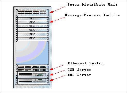 整個SMSS系統(tǒng)設(shè)備采用標(biāo)準(zhǔn)19英寸、42U高機(jī)架,包含了MPM、CSM及其它等功能實(shí)體。