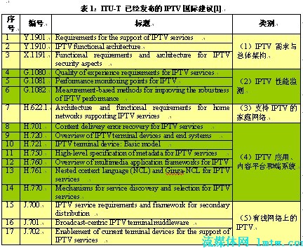 IPTV Forum)、日本IPTV論壇(IPTV FORUM JAPAN)等。ITU-T作為信息通信行業(yè)標準化的官方組織,自2006年就啟動了相關工作,除了自身完成了多項核心國際標準(國際建議)外,還在協(xié)調全球標準化活動方面發(fā)揮了重要作用。