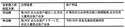如采用多(雙)邊緣接入控制方式,需從終端起,在二層接入網(wǎng)絡中為每個用戶的每種業(yè)務部署不同的二層虛通道PV(/LVAC),將增加二層網(wǎng)絡的復雜性。為減輕復雜性,可采用單通道接入,再利用匯聚交換機具備的業(yè)務感知能力分離不同的業(yè)務。這種方式使不同的業(yè)務接入控制點之問,難以進行不同業(yè)務間的流量控制和協(xié)調。