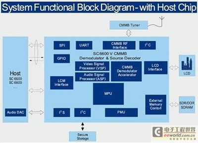 目前,支持CMMB標準的芯片產(chǎn)品多是信道解調(diào)芯片,必須要外配信源解碼處理器芯片來完成信源解碼,從而才能真正實現(xiàn)手機電視功能。SC6600V是業(yè)界首顆集成了CMMB解調(diào)和H.264信源解碼的高性能、低功耗芯片,它的集成度提高直接帶來利益點就是功耗和成本的降低,豐富的外圍接口以及靈活的功能選擇給這款芯片增添了增值的空間,擴展了其應(yīng)用領(lǐng)域。