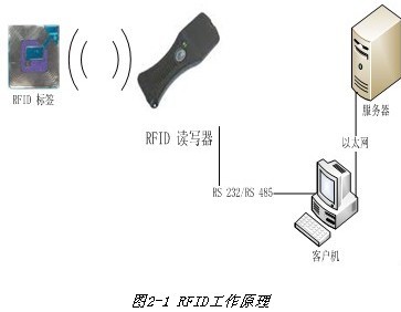 RFID的基本工作原理是利用空間電感額耦合或者電耦合來(lái)進(jìn)行通信,以達(dá)到自動(dòng)識(shí)別被標(biāo)識(shí)物體的目的。將RFID標(biāo)簽安裝在被識(shí)別物體上(粘貼、插放、掛佩、植入等),當(dāng)被標(biāo)志物體進(jìn)入無(wú)線射頻識(shí)別系統(tǒng)的閱讀范圍時(shí),標(biāo)簽和讀寫器之間進(jìn)行非接觸式信息通信,標(biāo)簽向讀寫器發(fā)送攜帶信息,讀寫器接收這些信息并進(jìn)行解碼,傳輸給后臺(tái)處理計(jì)算機(jī),完成整個(gè)信息處理過(guò)程。