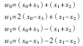 (1)在求取變換陣W=CXCT時(shí),根據(jù)變換的對(duì)稱性,將X的列變換(矩陣左乘)與行變換(矩陣右乘)分開實(shí)現(xiàn),把二維變換分割為兩次一維變換,并采用快速堞形算法[4]來實(shí)現(xiàn)。一維變換的快速算法實(shí)現(xiàn)如圖1所示,其中的列變換可用如下算式表示:
