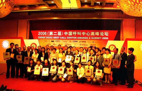 2006年9月19日,上海。2006(第二屆)中國(guó)呼叫中心高峰論壇暨2006年中國(guó)(亞太)最佳呼叫中心評(píng)選頒獎(jiǎng)典禮今天在上海舉行;本屆會(huì)議由亞太地區(qū)包括中國(guó)、臺(tái)灣、香港、新加坡、馬來(lái)西亞、日本和韓國(guó)等7個(gè)國(guó)家和地區(qū)的呼叫中心行業(yè)協(xié)會(huì)共同主辦,第一次聯(lián)合在中國(guó)大陸舉行。作為亞太地區(qū)呼叫中心領(lǐng)域最高規(guī)格的年度大會(huì)及行業(yè)評(píng)選頒獎(jiǎng)活動(dòng),今年的會(huì)議主題確定為:“中國(guó)呼叫中心的體系化管理及亞太呼叫中心市場(chǎng)的機(jī)會(huì)”。來(lái)自通信、銀行、保險(xiǎn)、IT、電子、制造等行業(yè)的20余家呼叫中心運(yùn)營(yíng)機(jī)構(gòu)分獲最佳企業(yè)自建、最佳專(zhuān)業(yè)外包、最佳呼入服務(wù)、最佳呼出服務(wù)、最佳技術(shù)支持、最佳新建及最佳全國(guó)性呼叫中心管理團(tuán)隊(duì)等各專(zhuān)業(yè)獎(jiǎng)項(xiàng)。