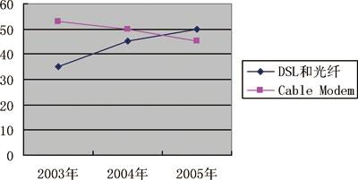 市場研究公司ParksAssociates最新發(fā)布的研究報告稱,2007年美國住宅用戶的寬帶網(wǎng)普及率將超過50%,美國住宅寬帶網(wǎng)用戶將超過6000萬,這些用戶都可以通過寬帶接入享受三種業(yè)務(wù)捆綁服務(wù)。由于電信公司的寬帶接入技術(shù)占優(yōu)勢,因而在三種業(yè)務(wù)捆綁服務(wù)方面,電信公司占有競爭優(yōu)勢。所以,凡是在兩家有競爭的地方,有線電視公司都無例外地降低了價格,并失去了相當(dāng)一部分傳統(tǒng)市場。