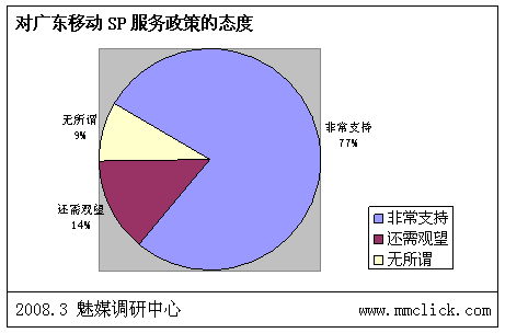 最近公布的空中網(wǎng)財(cái)務(wù)報(bào)表的數(shù)據(jù)顯示空中網(wǎng)總收入環(huán)比增長(zhǎng),結(jié)合之前廣東移動(dòng)推出:廣東移動(dòng)向重服務(wù)轉(zhuǎn)變 首推“6+1”服務(wù),SP行業(yè)可以說是暖風(fēng)頻吹。魅媒無線行業(yè)調(diào)研中心隨機(jī)從3月3日到3月5日隨記電話采訪50多家全網(wǎng)以及廣東省網(wǎng)SP公司相關(guān)負(fù)責(zé)人,對(duì)最近的SP行業(yè)的政策調(diào)整進(jìn)行調(diào)查,有以下的數(shù)據(jù):