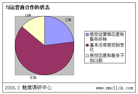 魅媒無線調(diào)研中心認(rèn)為:由于前期政府以及運(yùn)營(yíng)商對(duì)SP行業(yè)的相關(guān)整頓效果明顯,相關(guān)的制度、措施以及管理系統(tǒng)上線后,SP違規(guī)的風(fēng)險(xiǎn)已經(jīng)越來越大,行業(yè)自律狀態(tài)較之前有明顯的改善。但是由于部分的制度明顯存在矯枉過正現(xiàn)象,不少的措施嚴(yán)重影響到用戶的體驗(yàn),而且對(duì)SP管理一直出于消極的狀態(tài),需要不斷調(diào)整。