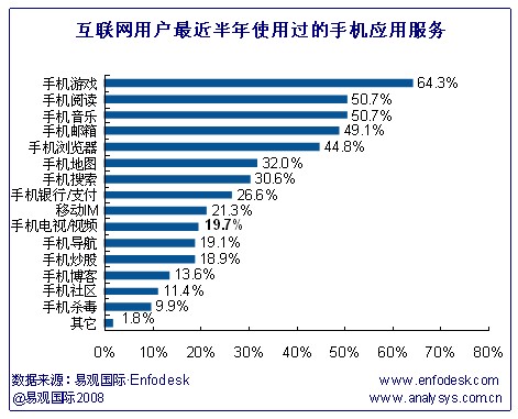 2009年手機游戲、手機閱讀成為用戶最受歡迎的手機應用服務