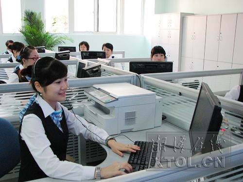 湘潭市商業(yè)銀行電話銀行工作人員正在為客戶提供服務