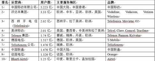 據(jù)國外媒體報道,下面根據(jù)2009年底的用戶總數(shù)列出全球10大無線運營商。排名第11到20的運營商名單將于下周公布。用戶信息和市場名單均來自各運營商的網(wǎng)站。RCR Wireless News公布的運營商排行榜為RCR Wireless News所有,而不應被視為任何上榜公司的一種認可。