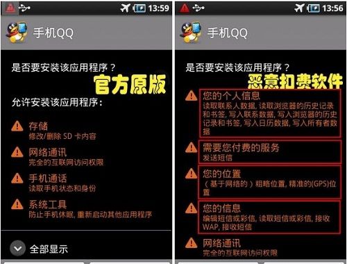 應(yīng)用安裝前的功能調(diào)用提示會(huì)讓吸費(fèi)應(yīng)用露出馬腳,但大部分用戶沒(méi)仔細(xì)看這個(gè)提示。