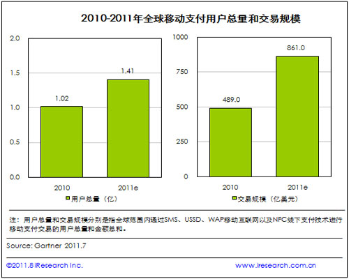 整理Gartner的最新數(shù)據(jù)研究發(fā)現(xiàn),預計2011年全球移動支付用戶規(guī)模將達到1.41億,較2010年增長38.2%;交易金額也將由2010年的489億美元增長至861億美元,增長率超過76%。該數(shù)據(jù)顯示,全球移動支付市場呈現(xiàn)穩(wěn)步增長態(tài)勢,而交易金額的增長速度遠遠超過用戶數(shù)量的增長速度也表明人們對于移動支付方式的依賴正在逐步加深。