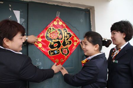 “阿姨,春節(jié)快到了,我們來看看您,前兩天已經(jīng)幫您把電充上了,這次給您帶了個手電,用著它以后到地下室可以照個亮。”隊長阿依古麗向丁阿姨說明來意,還跟丁阿姨試了試,手電是充電式的,不用換電池,丁阿姨挺高興的。臨走時,阿依古麗還在她家門上貼了個大紅的“!弊,祝福老人家新年快樂。