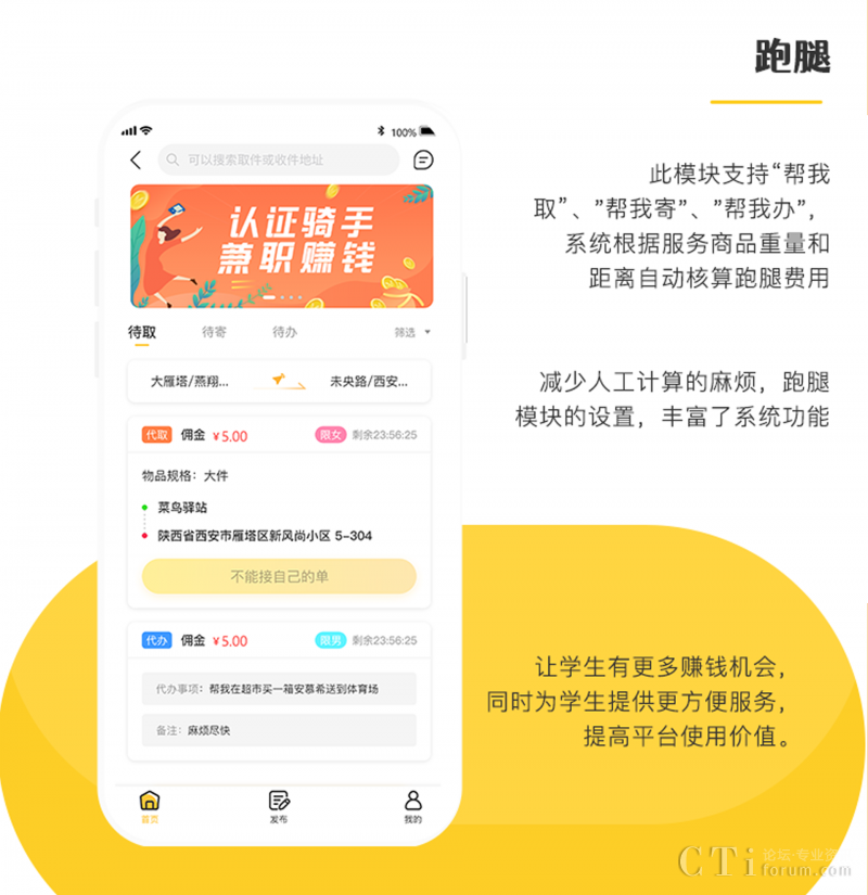 大家都知道,大學(xué)校園人群密集,很多大學(xué)的在校學(xué)生高達(dá)幾萬人,且大學(xué)生消費力和消費意愿均遠(yuǎn)高于一般人群,同時大學(xué)生代取快遞、代送外賣、代簽到等服務(wù)的需求很大,大學(xué)的跑腿服務(wù)市場是很大的。校園創(chuàng)業(yè)不僅需求旺盛,同時商家和用戶都有著高度聚集的特點,針對校園學(xué)生群體,做校園外賣平臺值得推行。
