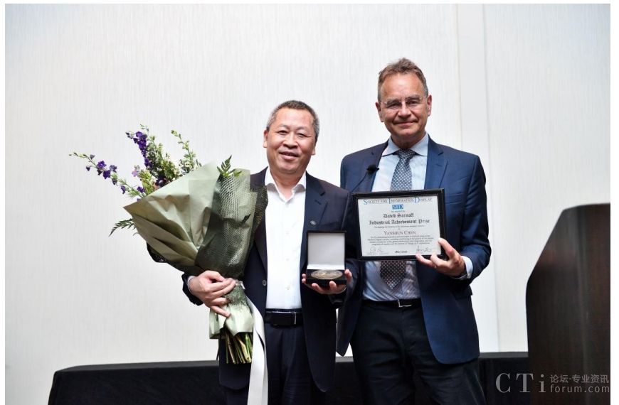 David Sarnoff產(chǎn)業(yè)成就獎(jiǎng)設(shè)立于2018年,每年僅授予全球顯示產(chǎn)業(yè)的一位杰出領(lǐng)袖,以表彰其卓越領(lǐng)導(dǎo)力和長(zhǎng)遠(yuǎn)影響。陳炎順董事長(zhǎng)在發(fā)表獲獎(jiǎng)致辭時(shí)表示,感謝SID榮譽(yù)與獎(jiǎng)項(xiàng)委員會(huì)授予的此項(xiàng)榮譽(yù),并特別感謝業(yè)界伙伴的支持以及全體京東方人為此刻榮譽(yù)的不懈努力!榮譽(yù)屬于全體京東方人!五年來(lái),京東方始終保持著創(chuàng)新不斷的步伐,特別是我們深刻的洞察半導(dǎo)體顯示和相關(guān)技術(shù),比如物聯(lián)網(wǎng)技術(shù)、數(shù)字技術(shù)、人工智能技術(shù),尤其針對(duì)目前快速發(fā)展的IOT技術(shù)的融合趨勢(shì),創(chuàng)新性提出“屏之物聯(lián)”的發(fā)展戰(zhàn)略,為半導(dǎo)體顯示產(chǎn)業(yè)發(fā)展打開(kāi)廣闊的空間和無(wú)限的可能,也為科技企業(yè)的戰(zhàn)略升維提供了思維邏輯和方法論!