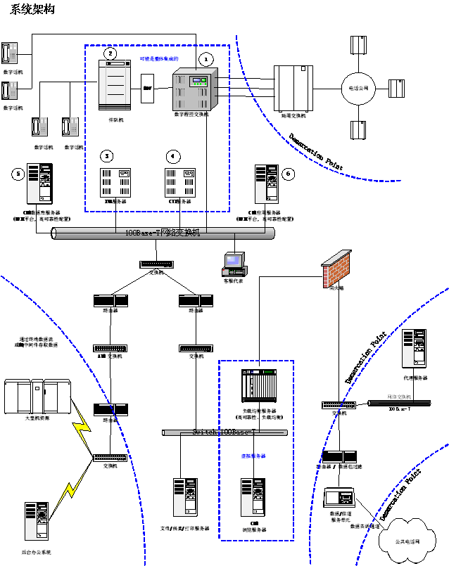 。。下面的圖表根據(jù)組件(硬件、軟件和網(wǎng)絡(luò)架構(gòu))及各組件間的連接(接口)“設(shè)計”了目標(biāo)呼叫中心系統(tǒng)。在協(xié)作中,這些架構(gòu)組件提供了運(yùn)行需求系統(tǒng)需要的技術(shù)服務(wù)。
