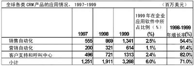 根據(jù)IDC研究,1999年全球CRM應用軟件市場正式形成,并快速增長。CRM軟件和服務收入的年增長率高達71%,其中營銷自動化軟件的增長率高達91.4%。
