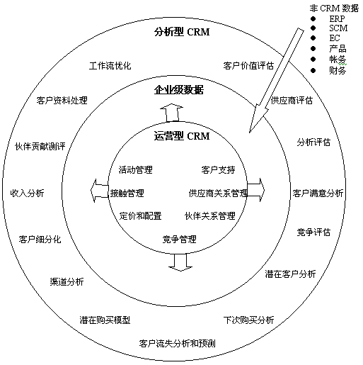 能提供上述問題和其他企業(yè)問題的客戶信息,就能夠?qū)蛻舴⻊?wù)、銷售技巧和隨后的促銷戰(zhàn)略作出關(guān)鍵決策。通過對“運(yùn)營型”CRM數(shù)據(jù)與來自于全公司的信息進(jìn)行集成,公司便能夠開始執(zhí)行分析型CRM;并且執(zhí)行后,可以作出真正的“以客戶為中心”的企業(yè)決策。