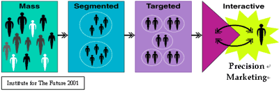 首先,互聯(lián)網(wǎng)的出現(xiàn)改變了營(yíng)銷(xiāo)的概念,為大規(guī)模定制創(chuàng)造了空前的機(jī)遇。隨著富裕而又有辨別能力的中產(chǎn)階級(jí)的逐漸壯大,預(yù)先營(yíng)銷(xiāo)的期望以及針對(duì)個(gè)人的解決方案日益成為一種標(biāo)準(zhǔn)。從記住他們的行為&偏好并為他們發(fā)送相關(guān)產(chǎn)品信息 (例如Amazon.com) …到幫助他們得到自己理想中的產(chǎn)品 (例如Dell.com,) ,CRM觀(guān)念的關(guān)鍵之處就在于為客戶(hù)提供符合他們需求的產(chǎn)品/服務(wù)而不是向他們推銷(xiāo)你的東西;ヂ(lián)網(wǎng)使你能夠與客戶(hù)建立學(xué)習(xí)關(guān)系,從銷(xiāo)售轉(zhuǎn)移到解決問(wèn)題;ヂ(lián)網(wǎng)上的CRM已經(jīng)上升到了另一個(gè)高度。