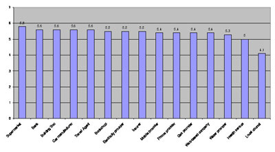 目前全球絕大多數(shù)的客戶體驗(yàn)都極為冷漠。我對歐洲所作的調(diào)研顯示人們對所有行業(yè)企業(yè)的情感依賴性相當(dāng)接近(2)。500位消費(fèi)者評出了自己的最佳客戶體驗(yàn),該調(diào)研橫跨多個行業(yè)。他們對供應(yīng)商作了如下評價(等級從0-7):