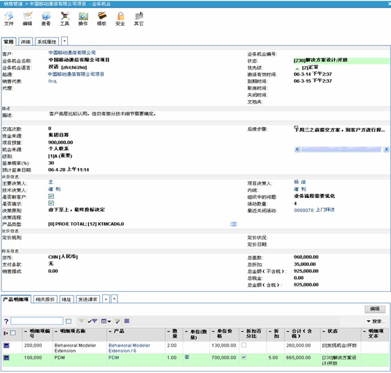 同時(shí),VamCRM融合銷售管道的流程化管理方法,可以有效地推進(jìn)業(yè)務(wù)進(jìn)展,管理一個(gè)完整的銷售過(guò)程。每次新的業(yè)務(wù)開(kāi)展時(shí),其過(guò)程都是以一個(gè)具體的線索開(kāi)始。然后,線索隨著業(yè)務(wù)發(fā)展能夠被提升和轉(zhuǎn)換為相應(yīng)的業(yè)務(wù)機(jī)會(huì),再依次提升轉(zhuǎn)換為報(bào)價(jià)、銷售訂單及發(fā)貨單。每一個(gè)銷售階段除了擁有該階段單據(jù)的關(guān)鍵業(yè)務(wù)數(shù)據(jù)外,還附帶了競(jìng)爭(zhēng)對(duì)手、備忘錄、相關(guān)活動(dòng)、聯(lián)系人、相關(guān)文檔等詳細(xì)業(yè)務(wù)信息。因此,銷售人員能夠便捷地管理自己每天開(kāi)展的銷售活動(dòng),以及下一步采取的相關(guān)行動(dòng)等業(yè)務(wù)信息。