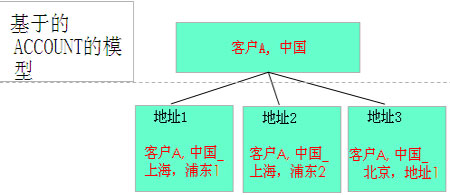 based CRM);诳蛻舻腃RM首先要將分散與公司各個(gè)部門的數(shù)據(jù),尤其是客戶數(shù)據(jù),統(tǒng)一起來(lái),以前的CRM系統(tǒng)中,普遍采用的是所謂基于客戶(Account)的模式,即一個(gè)客戶擁有很多的地址。銷售人員在創(chuàng)建Account時(shí),如果這個(gè)Account擁有不同的經(jīng)營(yíng)場(chǎng)所時(shí),會(huì)將這些不同的場(chǎng)所地址建立在同一客戶下面,