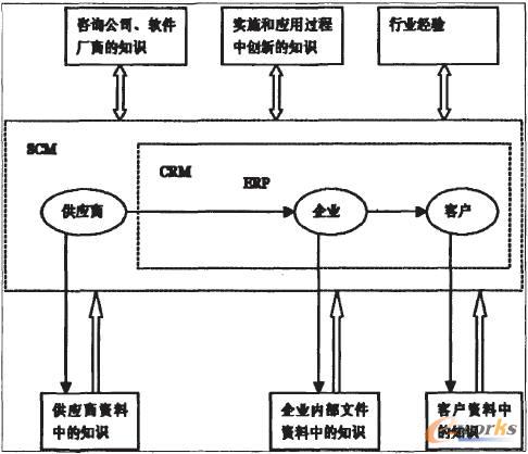 供應(yīng)鏈上的各個(gè)企業(yè)在各自ERP系流運(yùn)行的基礎(chǔ)上,與客戶之間用CRM系統(tǒng)聯(lián)結(jié)起來(lái),而整個(gè)供應(yīng)鏈上的所有企業(yè)都在SCM系統(tǒng)框架之內(nèi)。三者整合過(guò)程中,供應(yīng)鏈上各個(gè)企業(yè)(包括上游企業(yè)即供應(yīng)商,下游企業(yè)即客戶)資料中的知識(shí)由各個(gè)企業(yè)傳遞到CRM信息管理平臺(tái)之上。而咨詢公司與軟件廠商的知識(shí)、實(shí)施和應(yīng)用過(guò)程中創(chuàng)新的知識(shí)以及行業(yè)經(jīng)驗(yàn)等知識(shí)則需要在整合過(guò)程中在各個(gè)企業(yè)湖軟件廠商之間相互交流、磨合,最后提出大家都比較滿意的方案,付諸實(shí)拖。